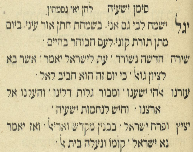 | 1168 | יגל ישמח לבי גם אני | Maqam Ashiran Shire Zimrah, Algiers, 1889 | ||||