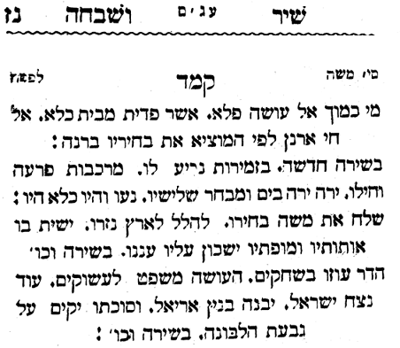 | Ajam | 212 | 171 | מקדש בנה בו | Shabbat Teruma or Vayaqhel. About building of the temple. Tabbush Manuscript |